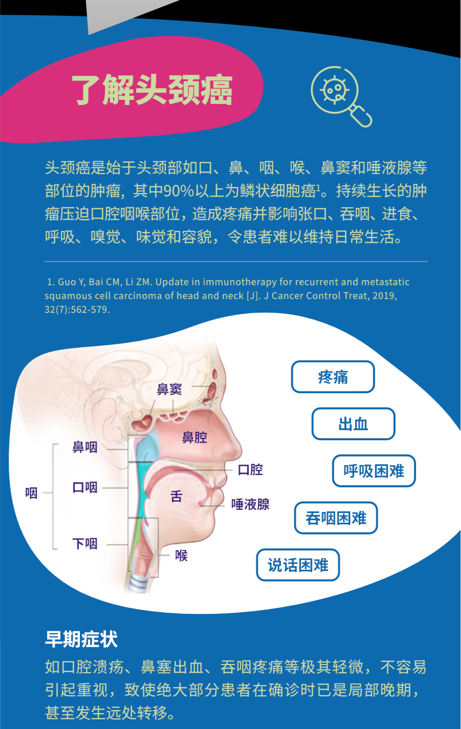 7月27日是“世界头颈癌日”,口、鼻、喉、鼻窦和唾液腺等部位的肿瘤都被称为头颈癌,其中90%以上为鳞状细胞癌。①